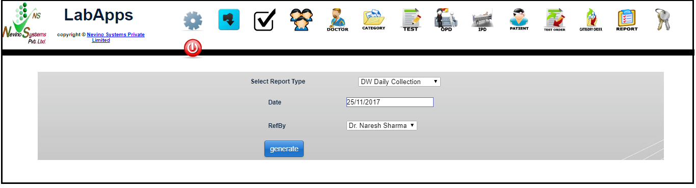 There is also a need to generate collection report as per doctor. So now we will learn that how we can generate doctor wise daily collection report in nevino lab software.