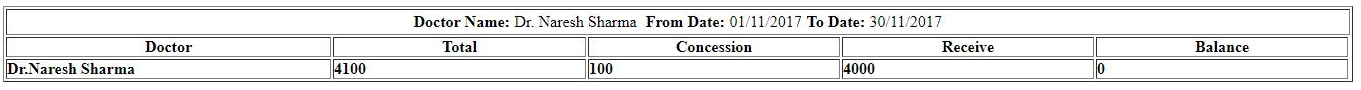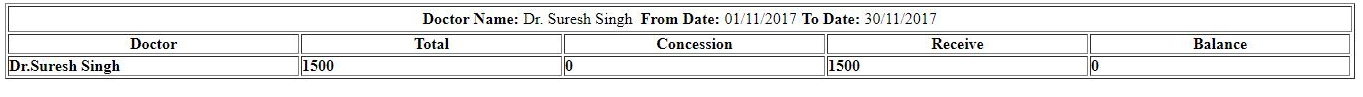Step 12. The report which will be displayed will be of Dr. Suresh Singh as shown in image below.