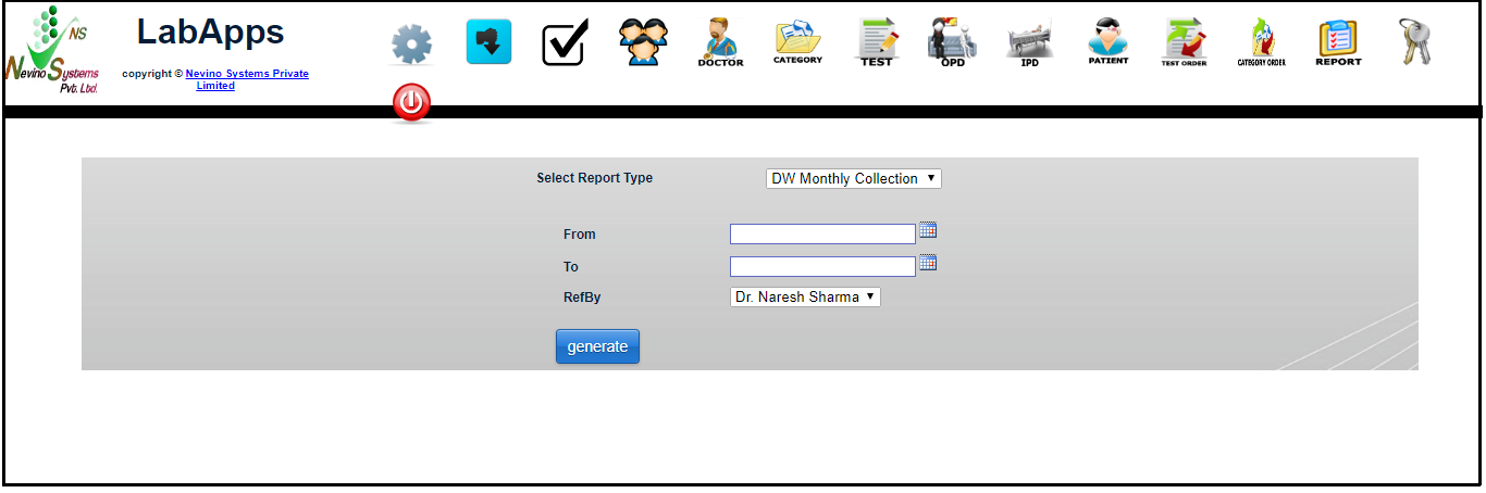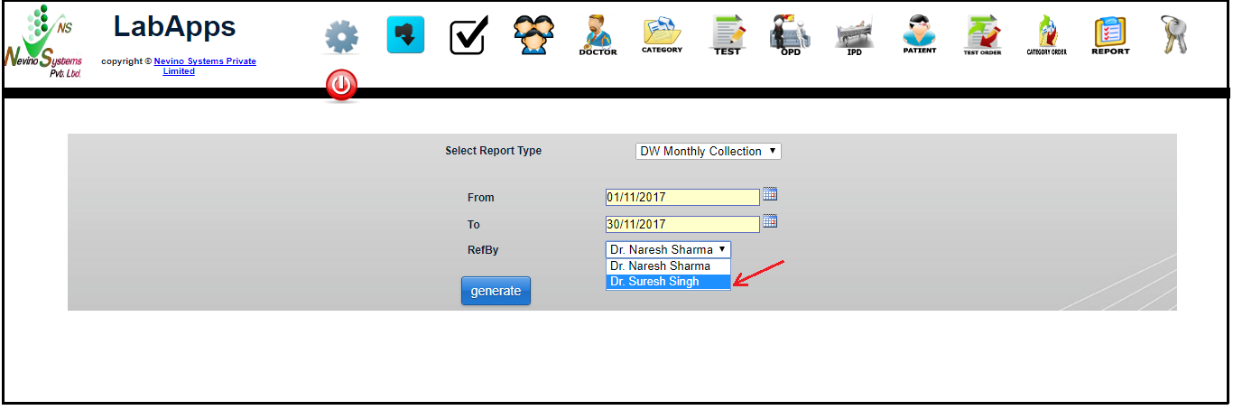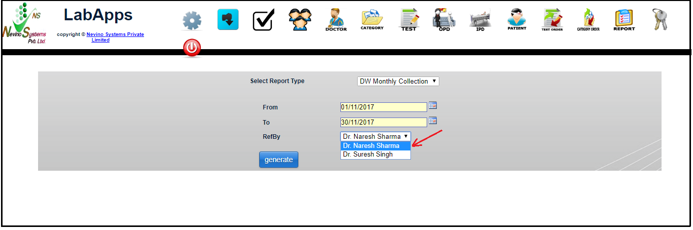 Nevino Lab Software provides the feature to see the monthly collection report doctor wise. So in this blog we will learn that how we can generate doctor wise monthly collection report.