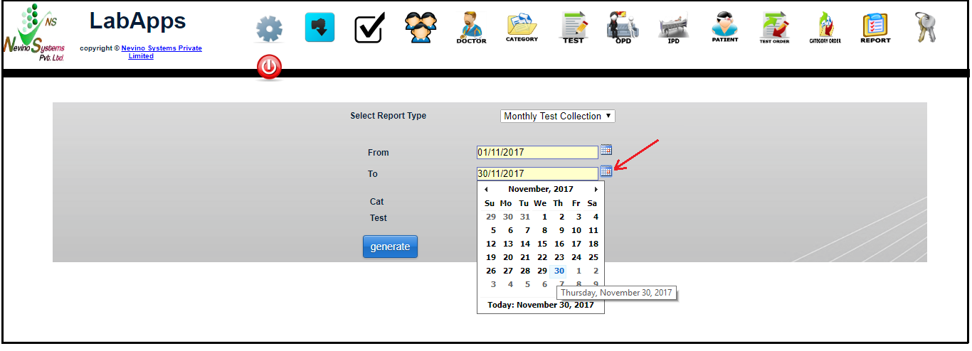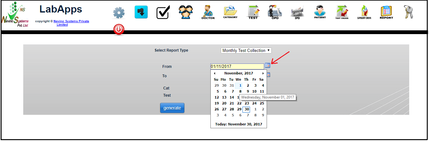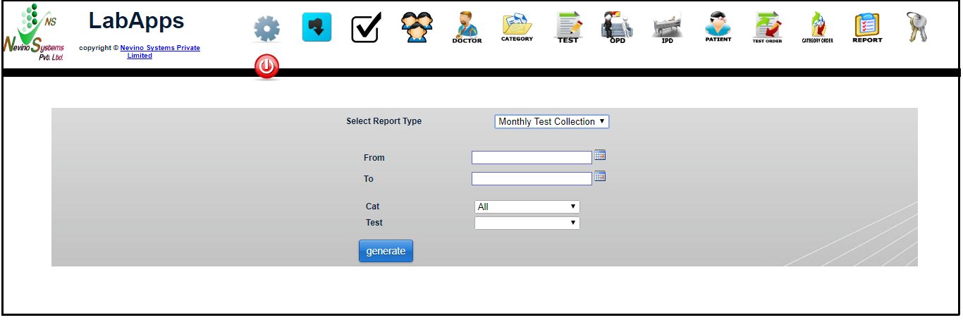 How to generate Monthly Test Collection report in Nevino Lab Software<< Already gone through this page >>How to generate Daily Test Collection report in Nevino Lab Software