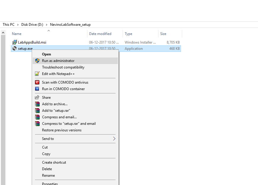 Step 1.When we open the folder named as ‘NevinoLabSoftware_setup’ we will see two files inside it as shown below.