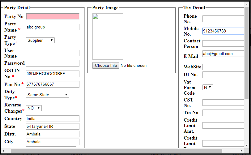 Step 7. Now the details are saved and the party name will be shown as per screen shot below.