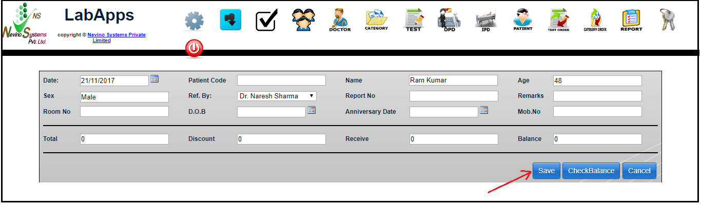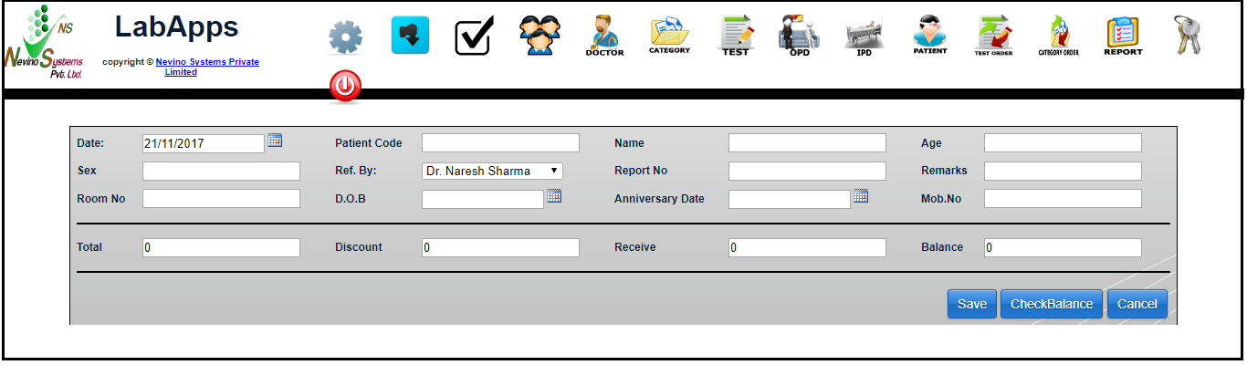 Step 1. On the main window of Nevino Lab Software click on ‘Report’ as shown in image below.