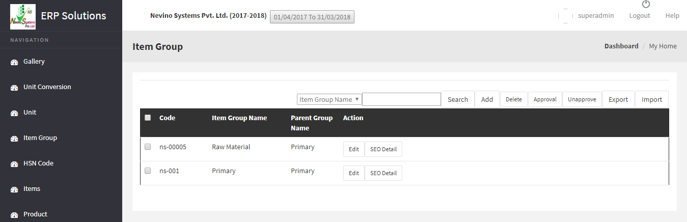 Step 9. When the page is refreshed as per above process you will find ‘Raw material’ as your ‘Category Name’ under ‘Item Group Name’ as shown in screen shot below.