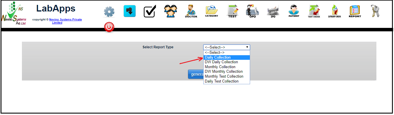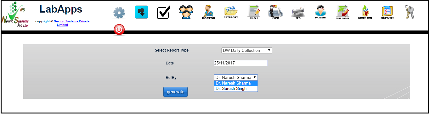 There is also a need to generate collection report as per doctor. So now we will learn that how we can generate doctor wise daily collection report in nevino lab software.