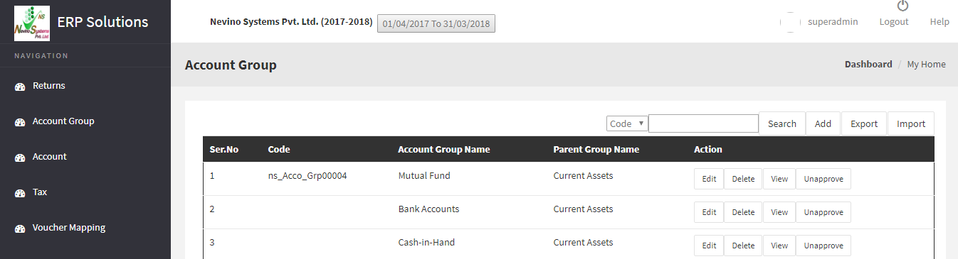 Step 2. Now click on ‘Account Group’ appearing in menu bar on left hand side.