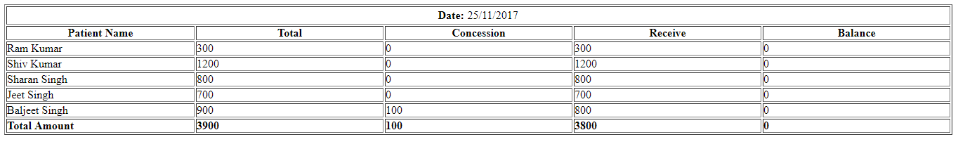 Step 11. On the click of ‘Generate’ button report for ‘Dr. Suresh Singh’ will be displayed as per below image.
