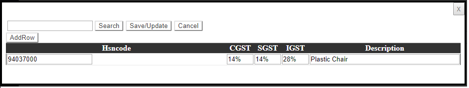 Step 3.After clicking on the ‘HSN code’ a window as below will appear.